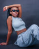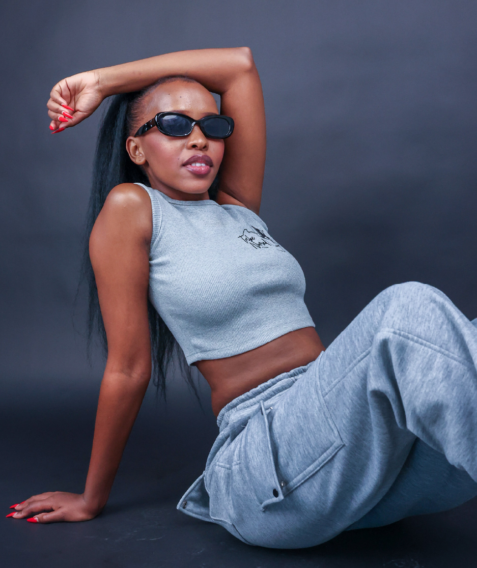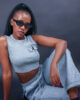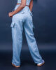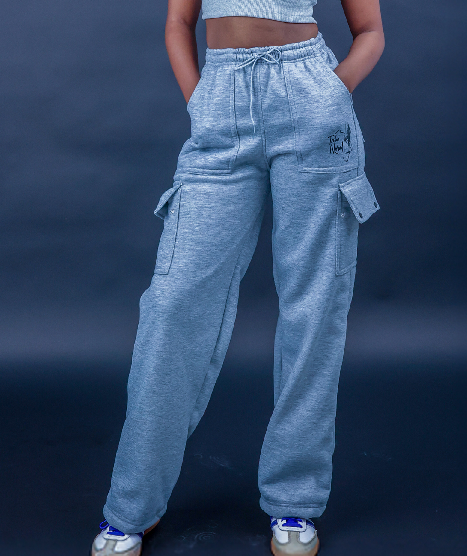 A trendy women’s two-piece set with cargo pants and a fitted vest.